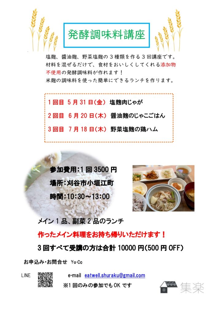 発酵調味料講座のお知らせ